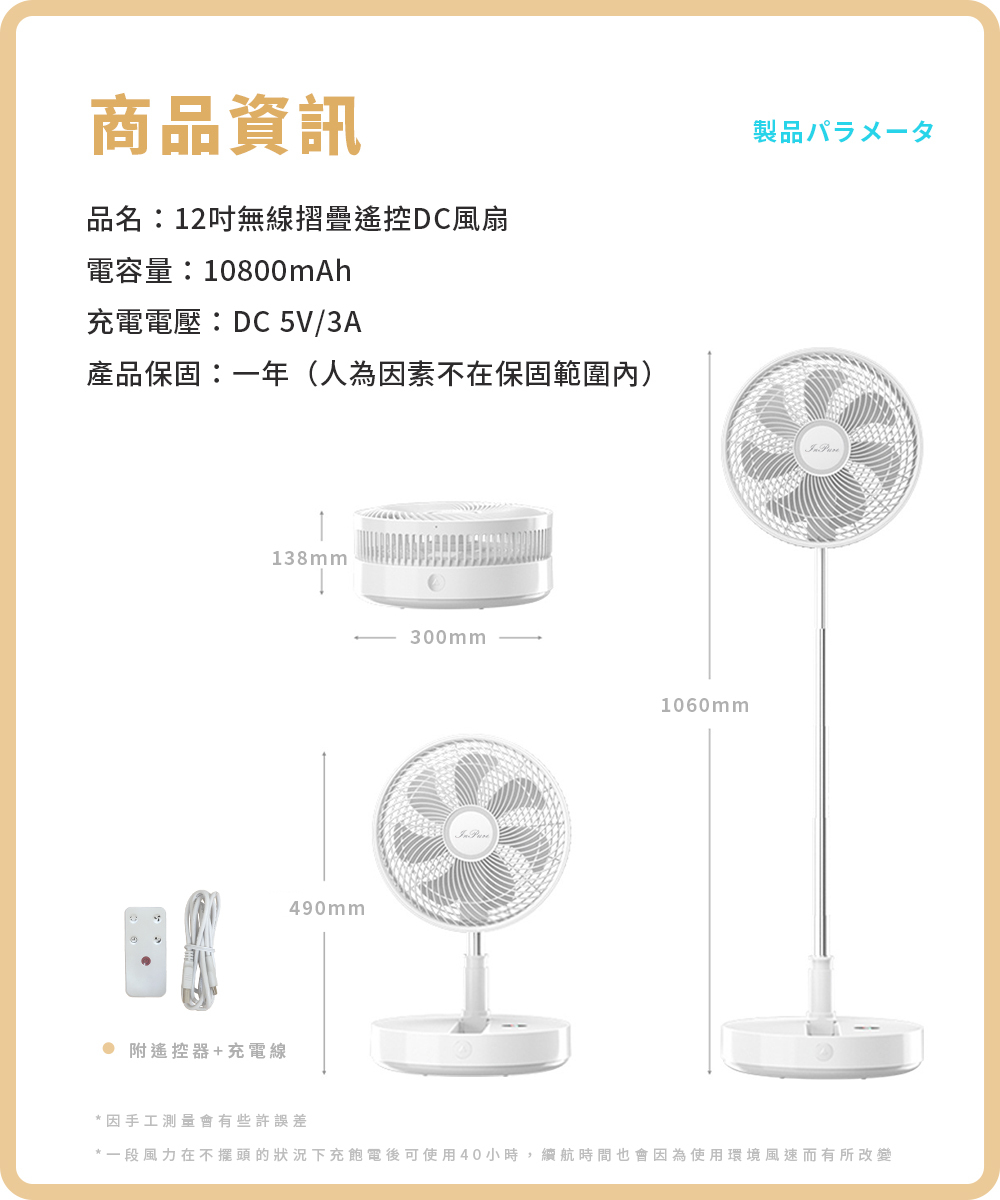 [ InPure團購]12吋無線折疊遙控DC風扇_10800mAh