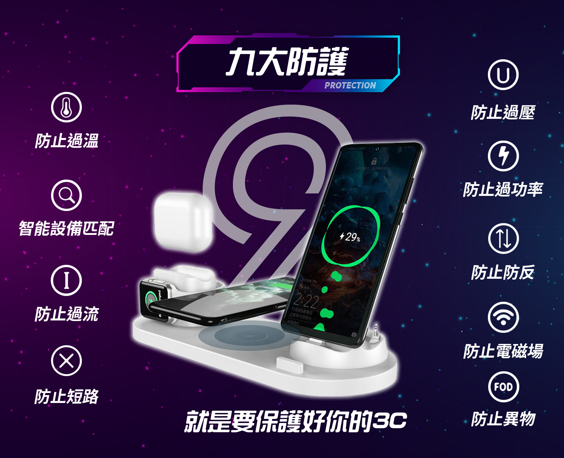 六合一無線充電器-兩色