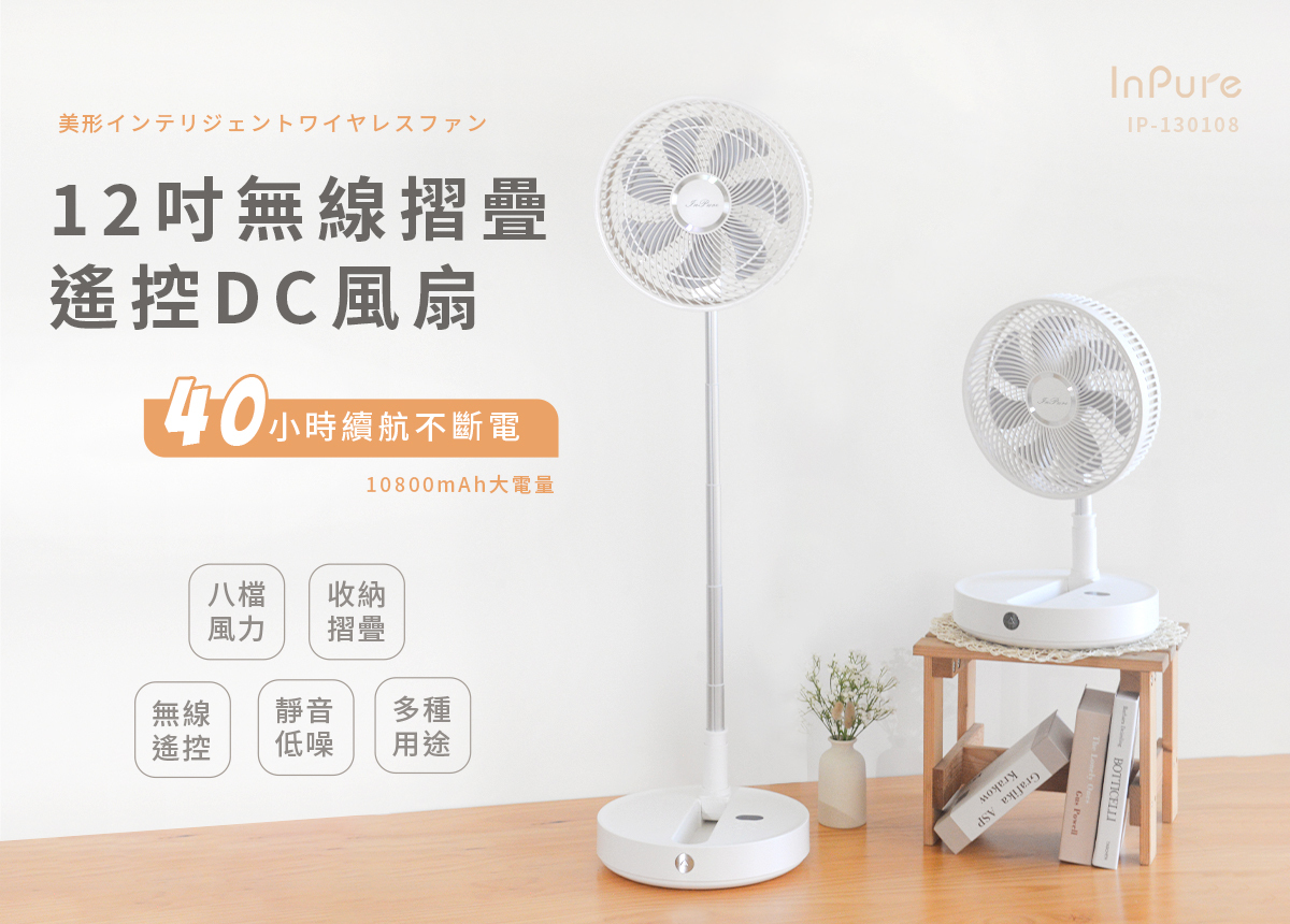 [ InPure團購]12吋無線折疊遙控DC風扇_10800mAh