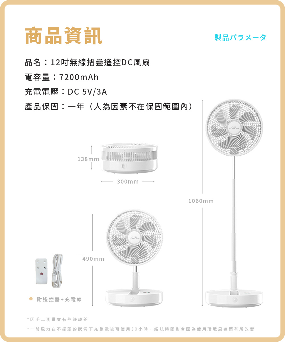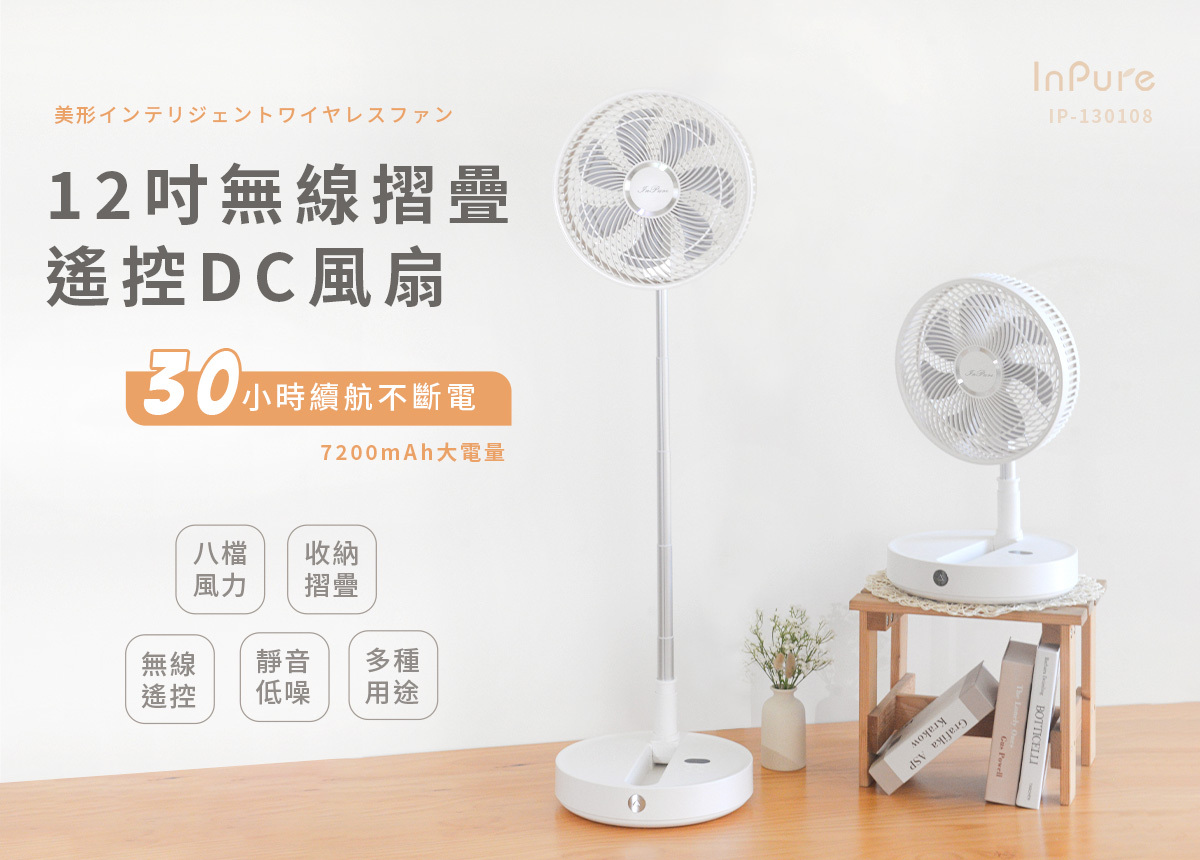 [ InPure團購]12吋無線折疊遙控DC風扇_7200mAh