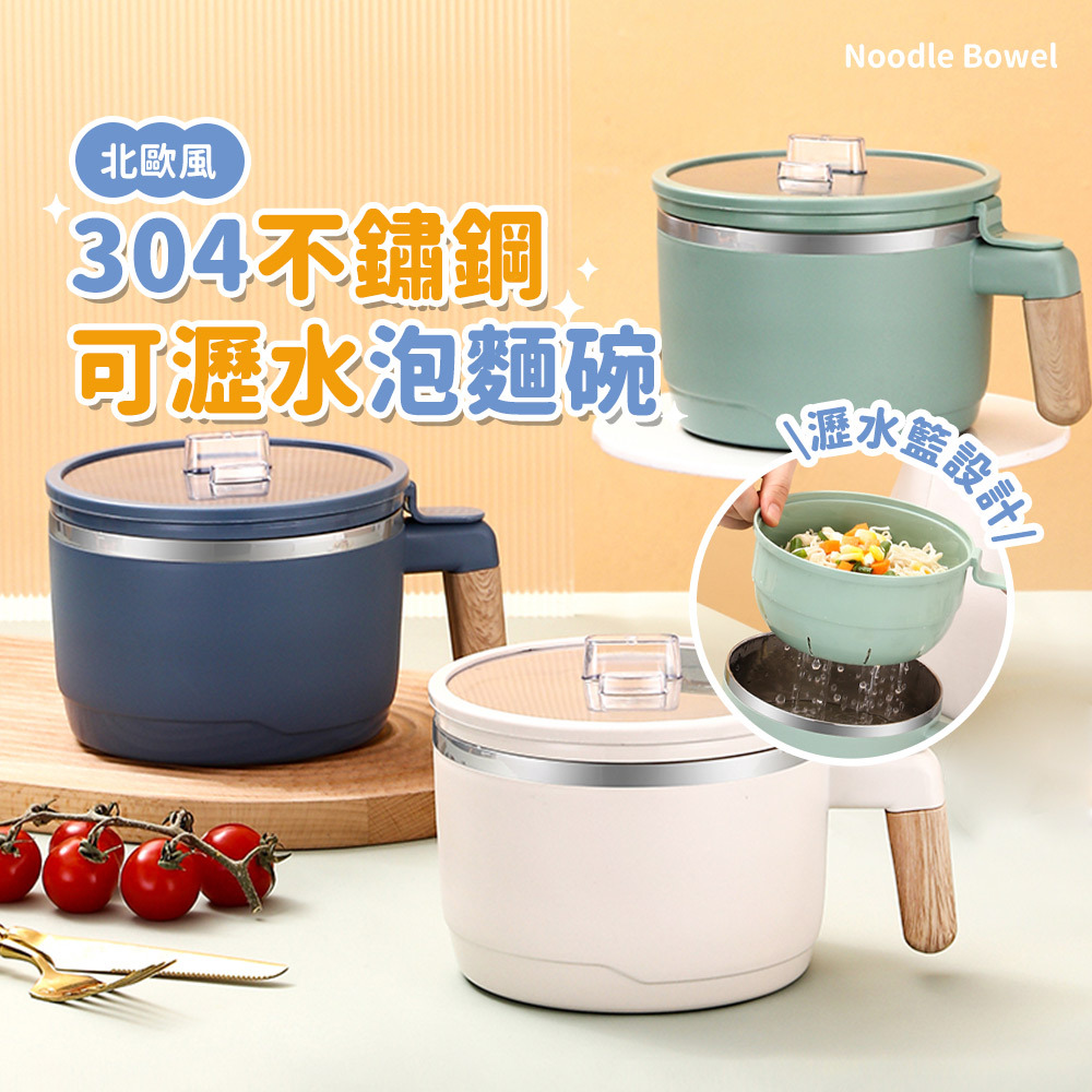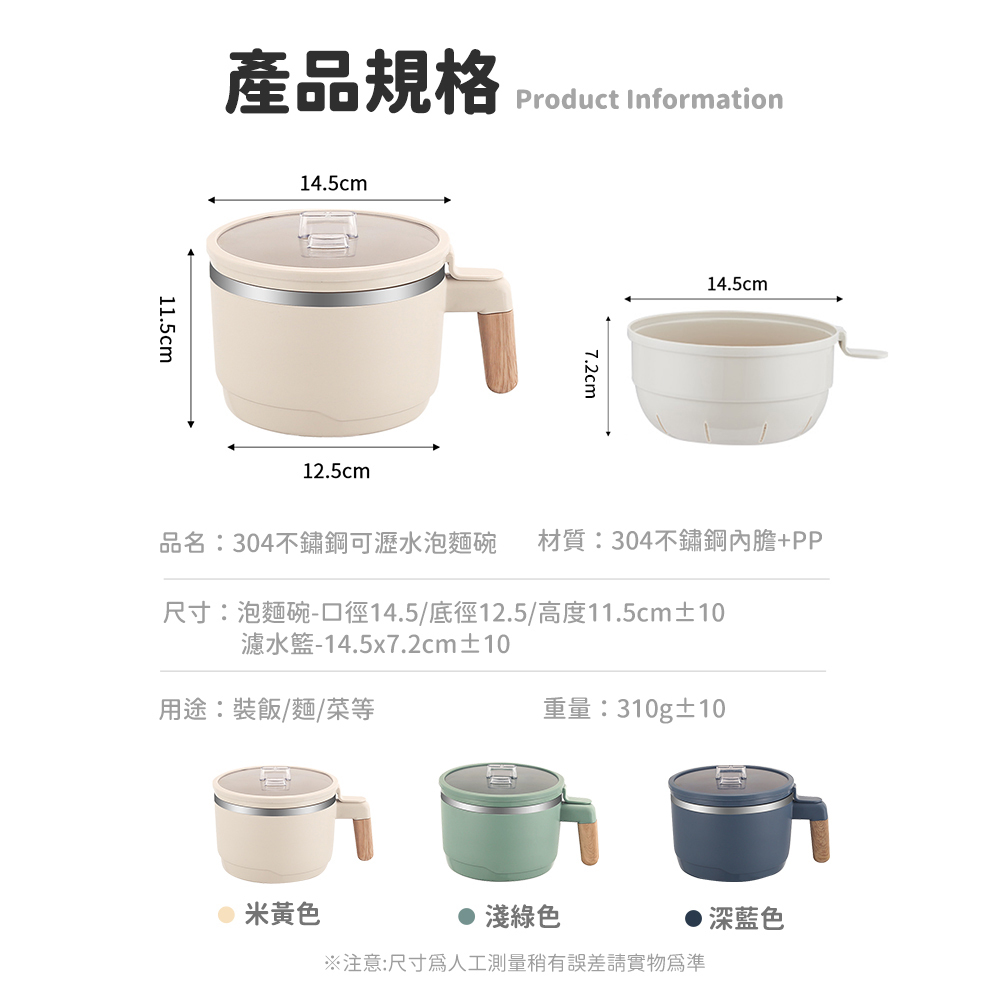 尺寸:泡麵碗-口徑14.5/底徑12.5/高度11.5cm±10 瀝水籃-14.5x7.2 cm±10