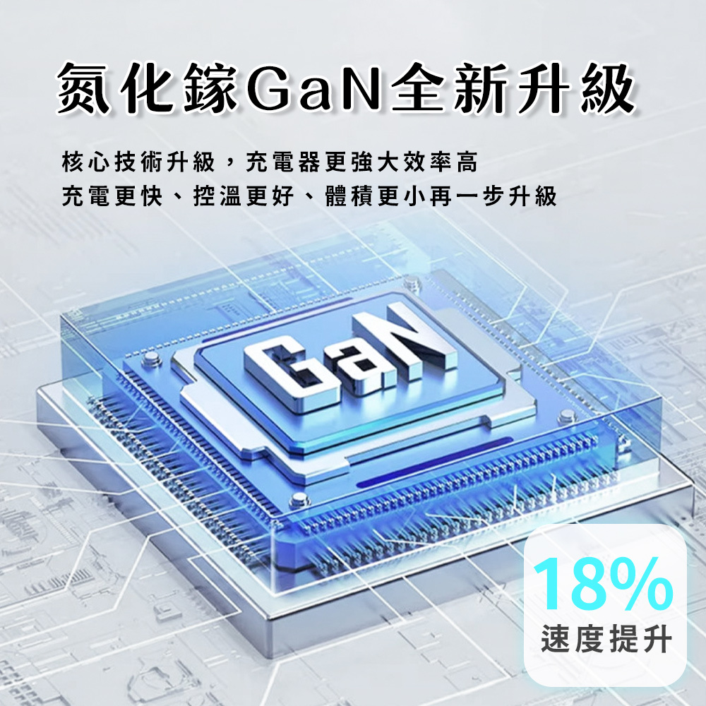 ‧升級氮化鎵技術,體積縮小,充電快更控溫!