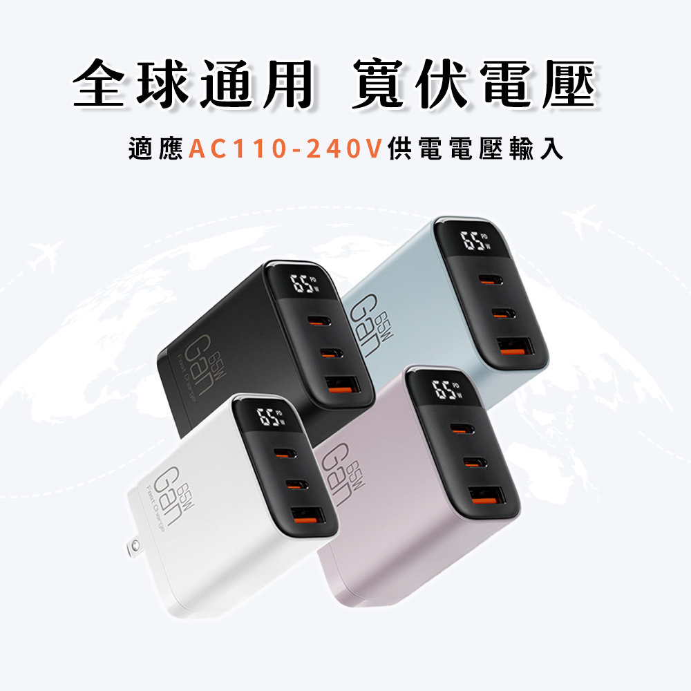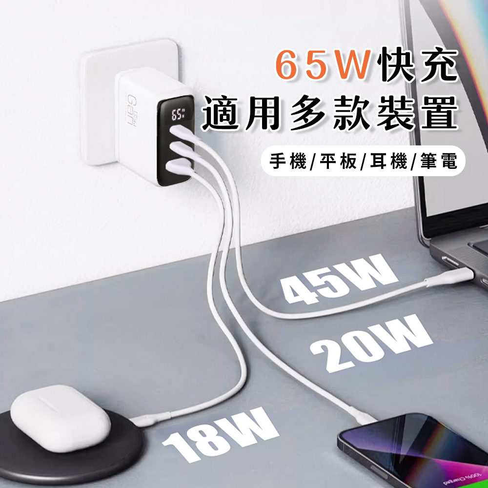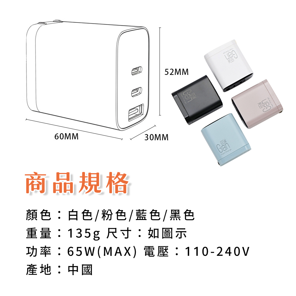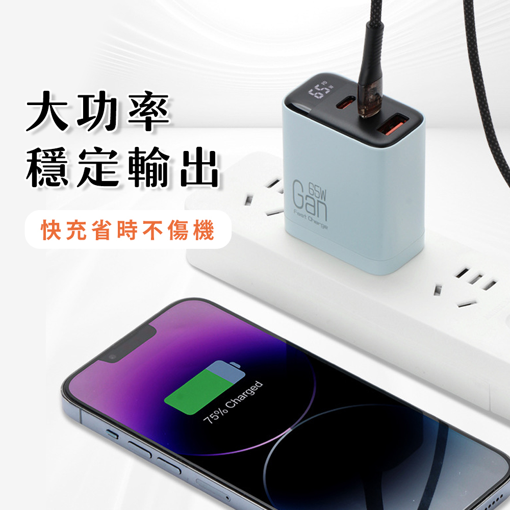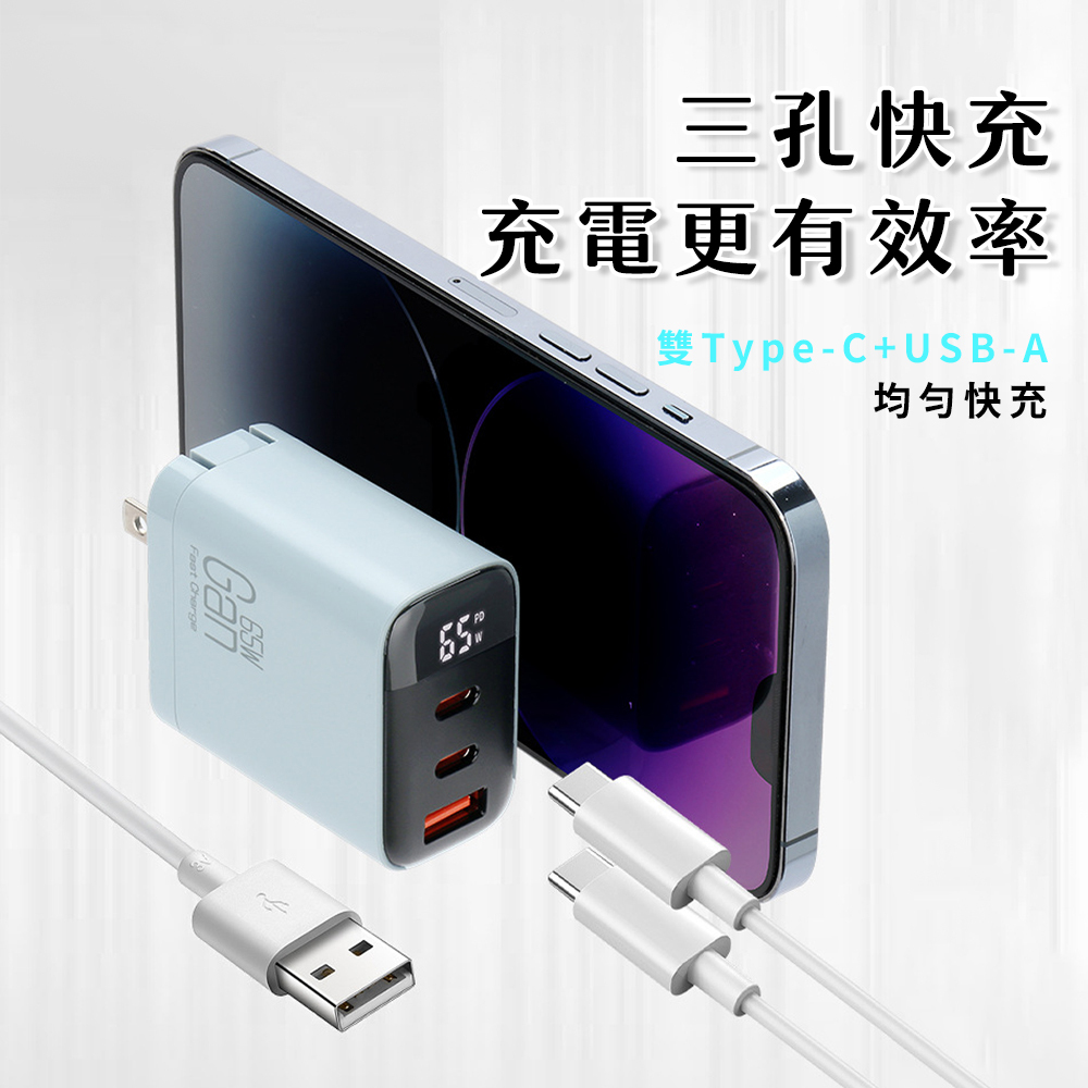 ‧65W PD快充,雙Type-C+USB-A 三口多兼容快充