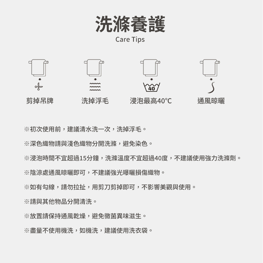 ※初次使用前,建議清水洗一次,洗掉浮毛。