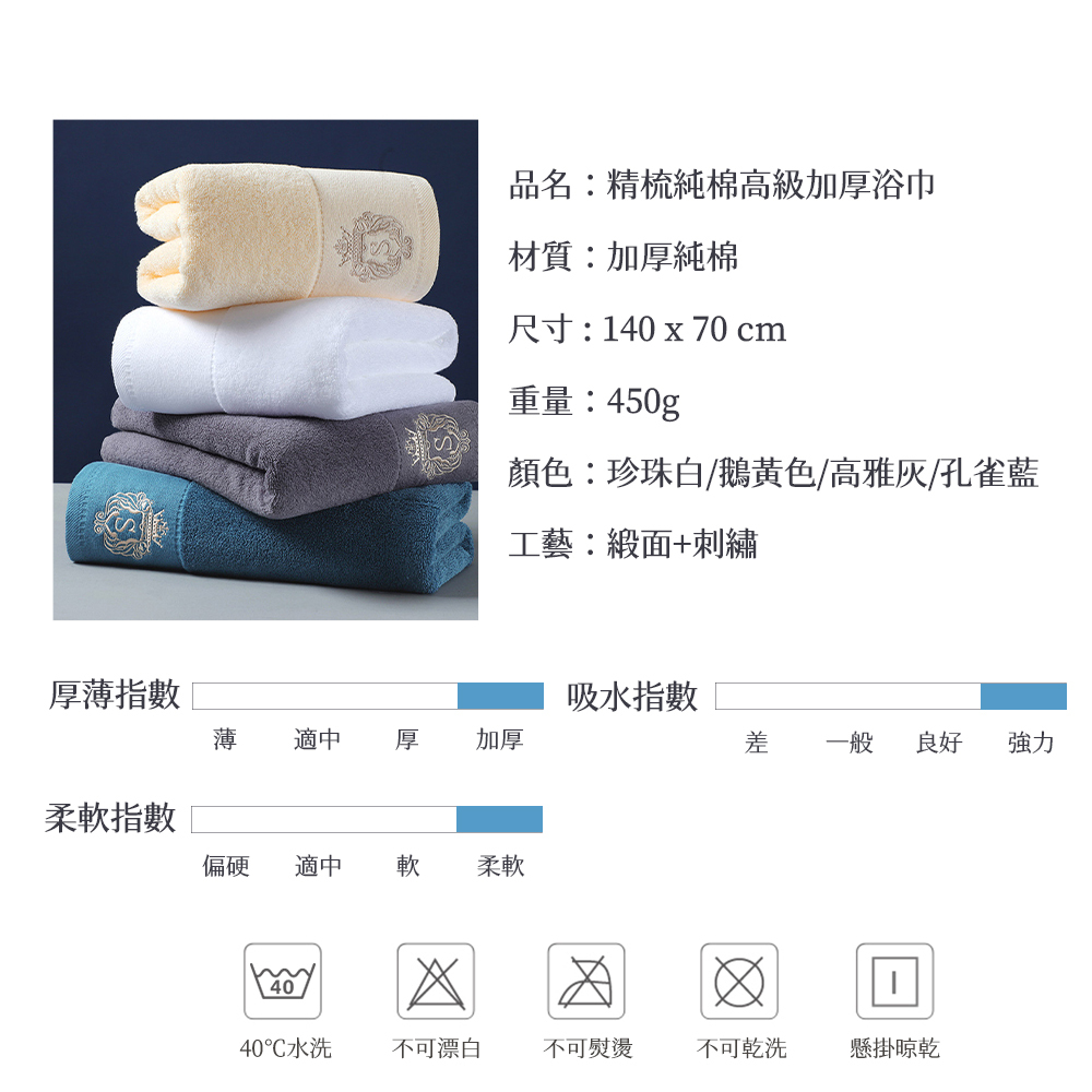 品名:精梳純棉高級加厚浴巾