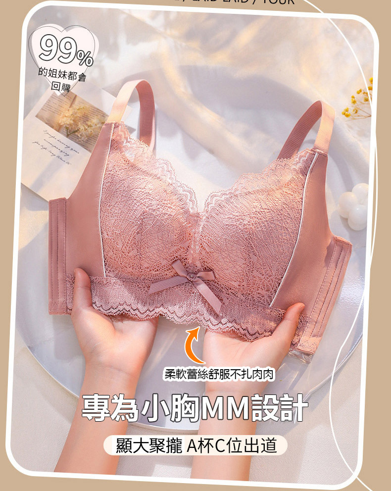 ★ 蕾絲罩杯面,精緻不扎肉肉。