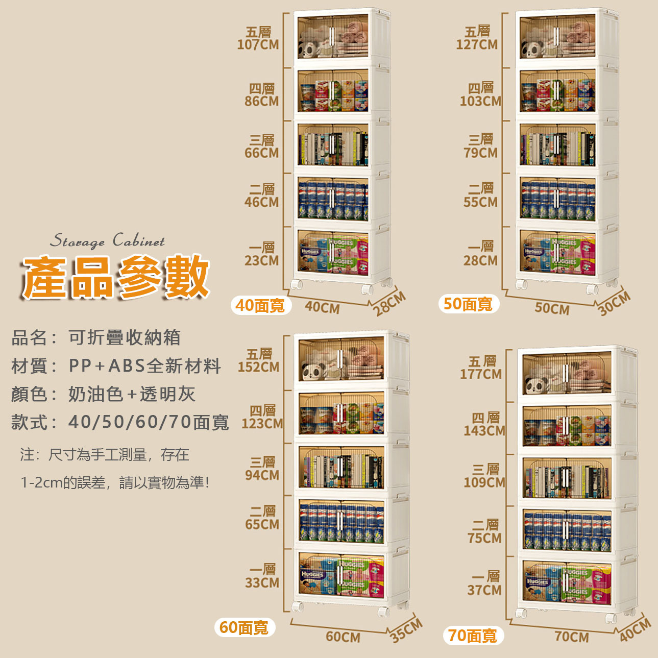 尺寸:五層-40x28x107cm 折疊後:9CM高