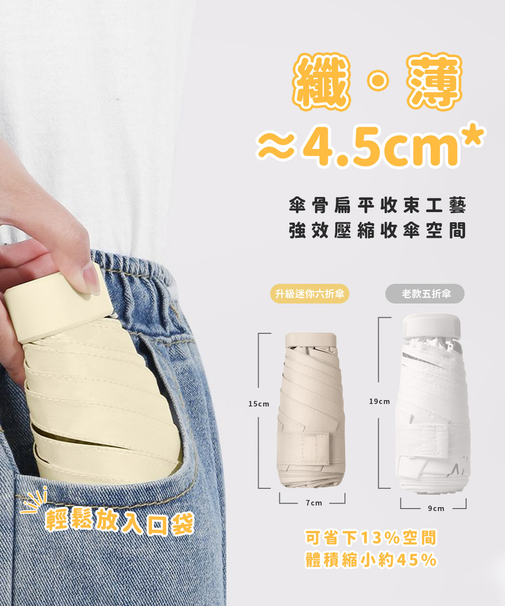 ☂️迷你身形,薄至4.5小至15cm。
