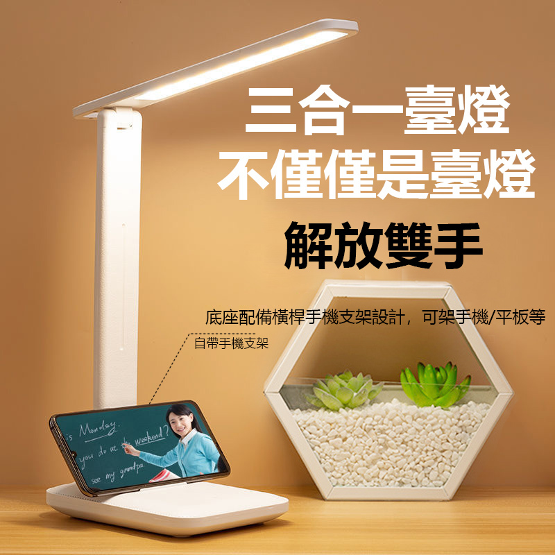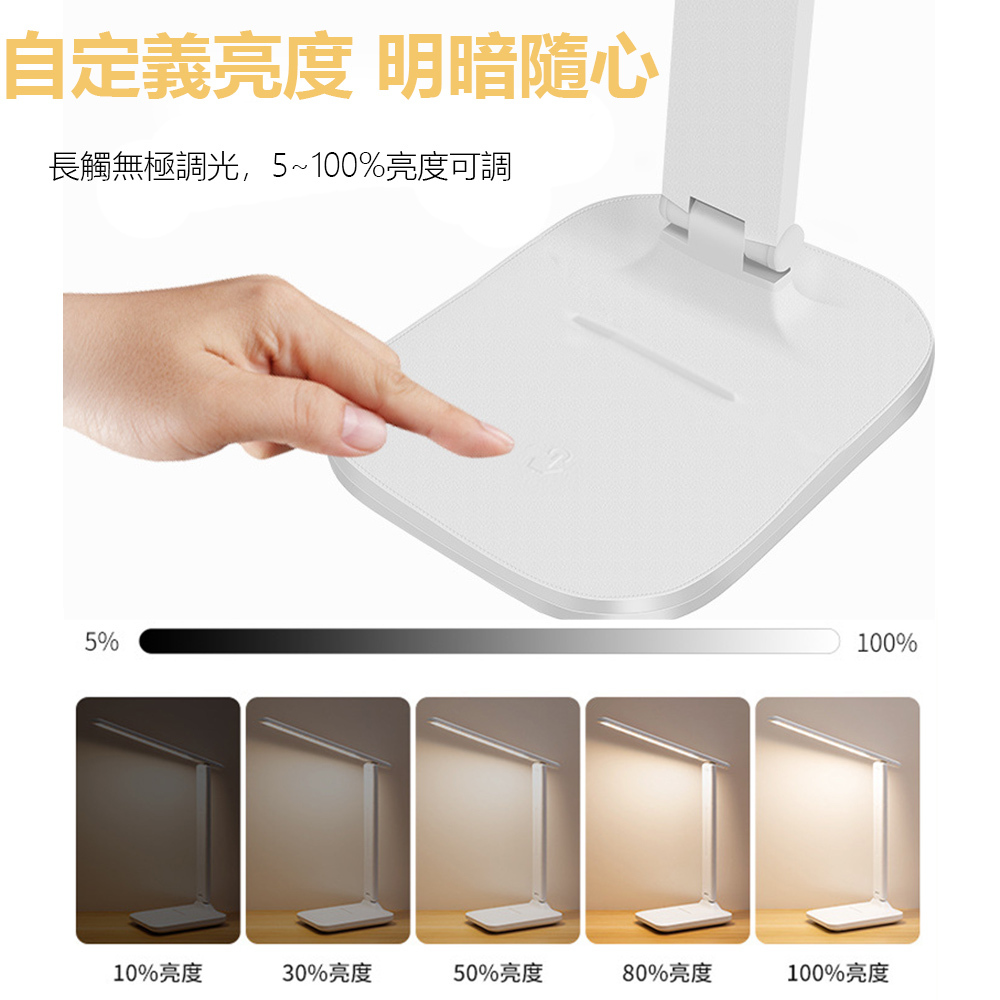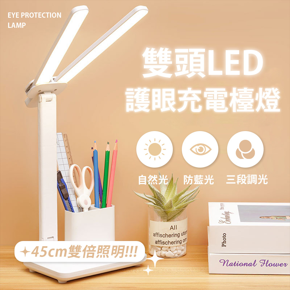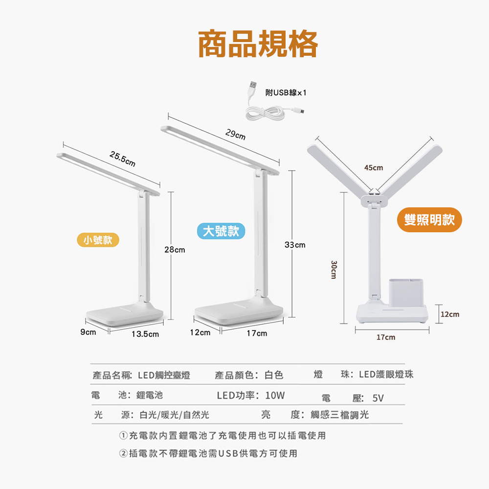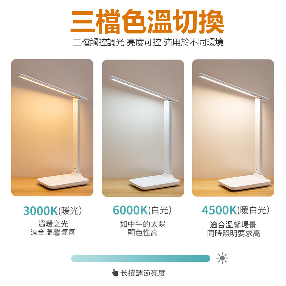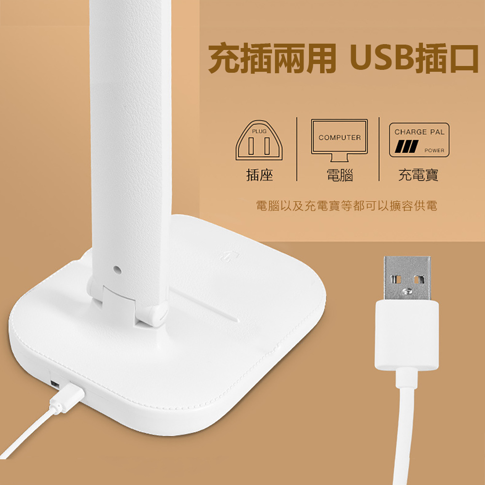 雙照明LED護眼充電檯燈-三檔調光+可調光色+線