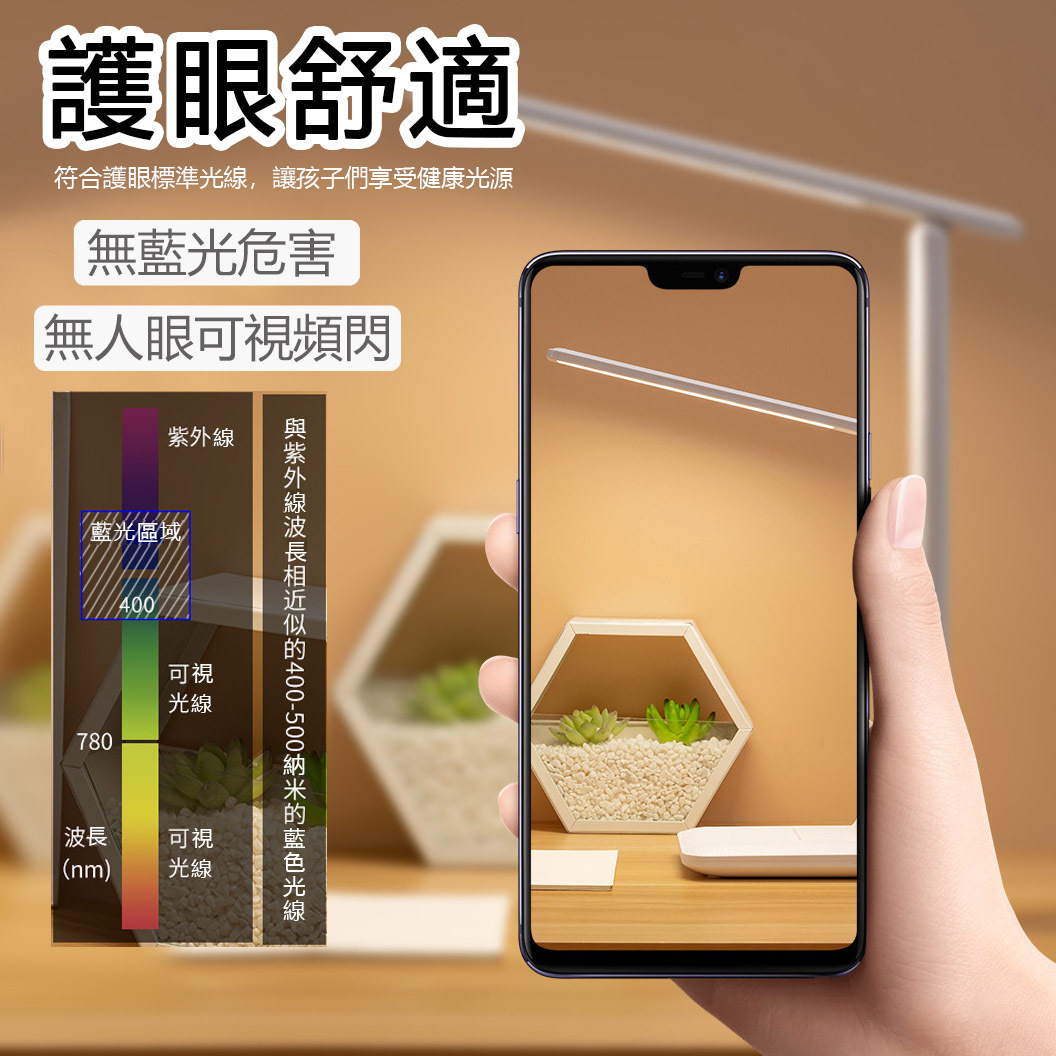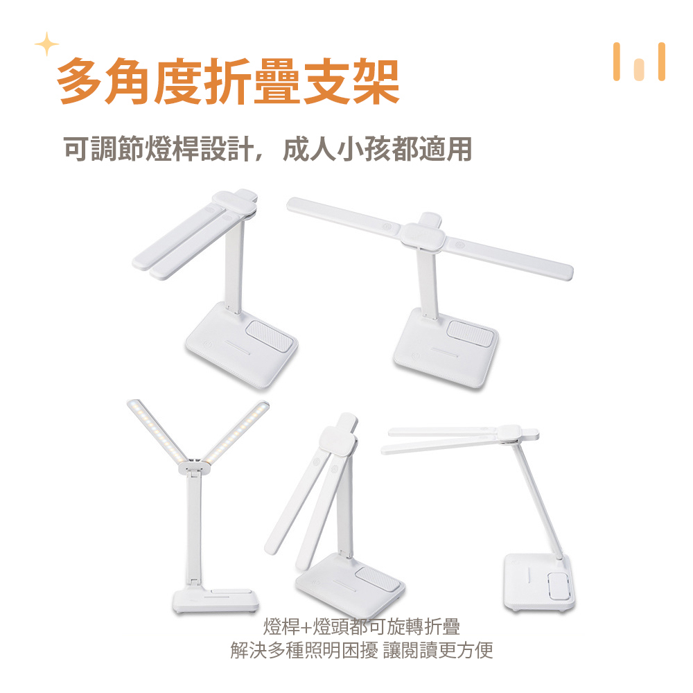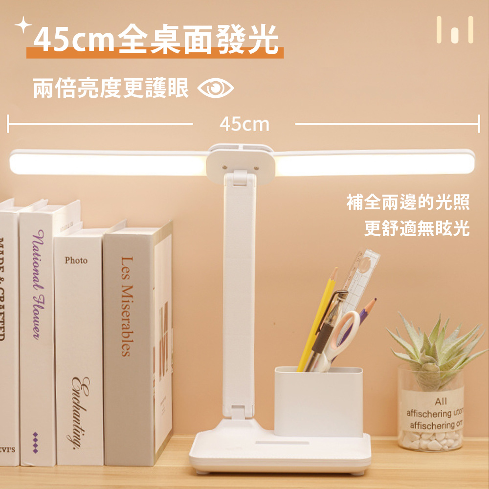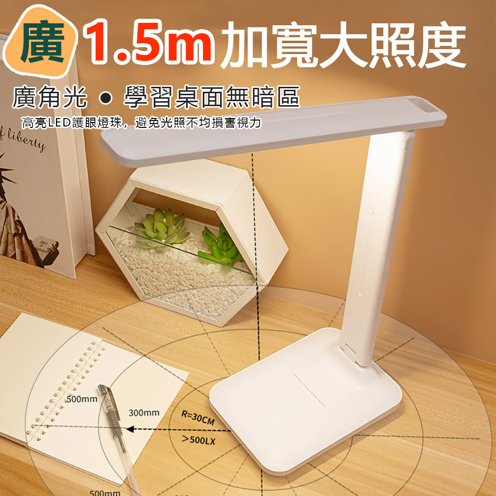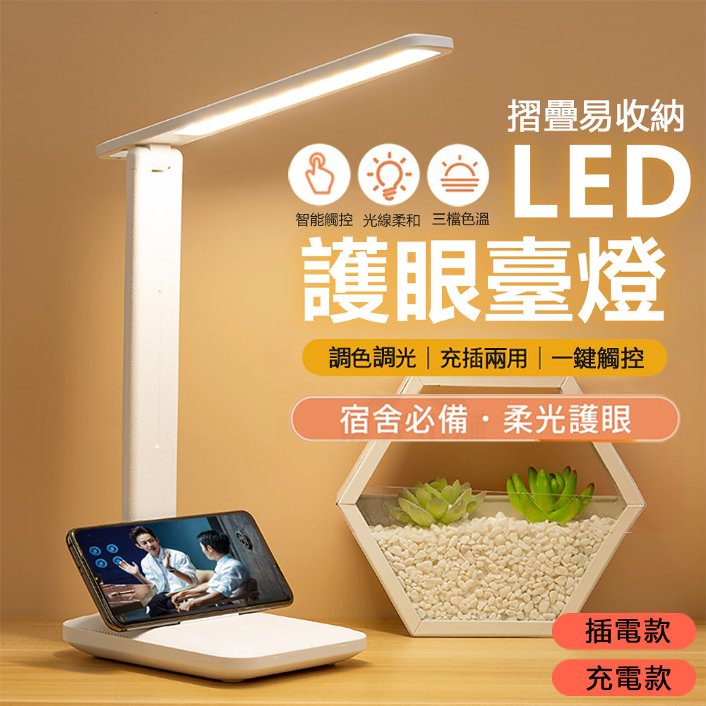 雙照明LED護眼充電檯燈-三檔調光+可調光色+線