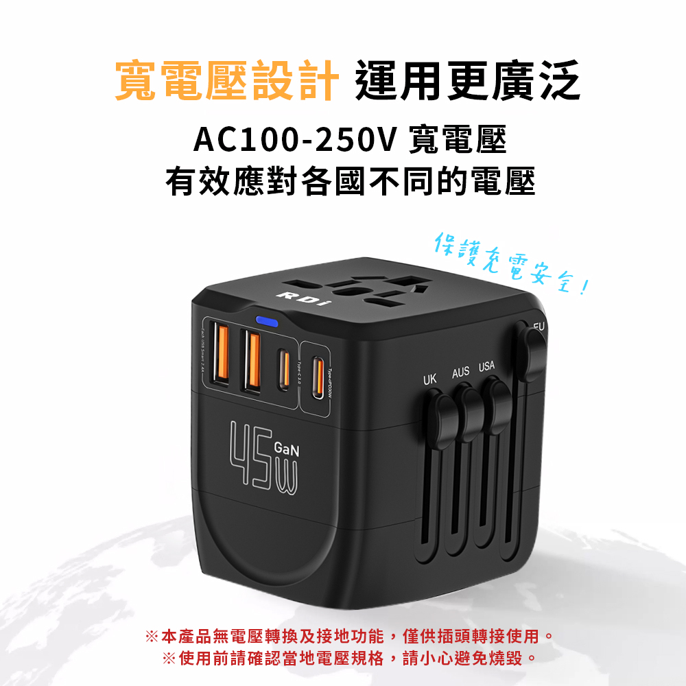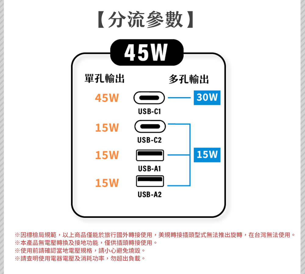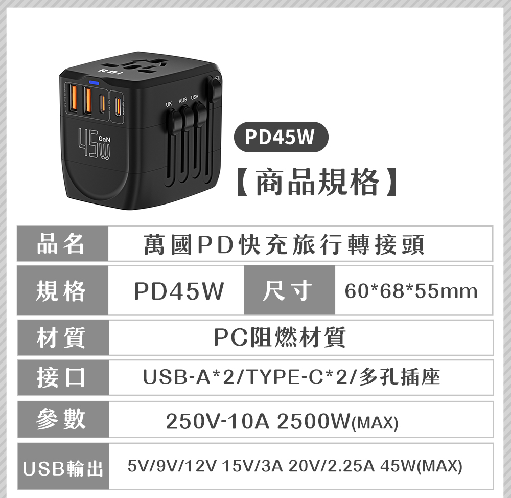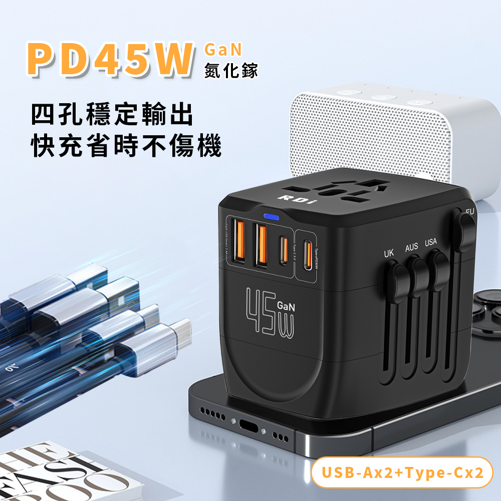 ◆ PD45W快充,GaN氮化鎵,快速充電!