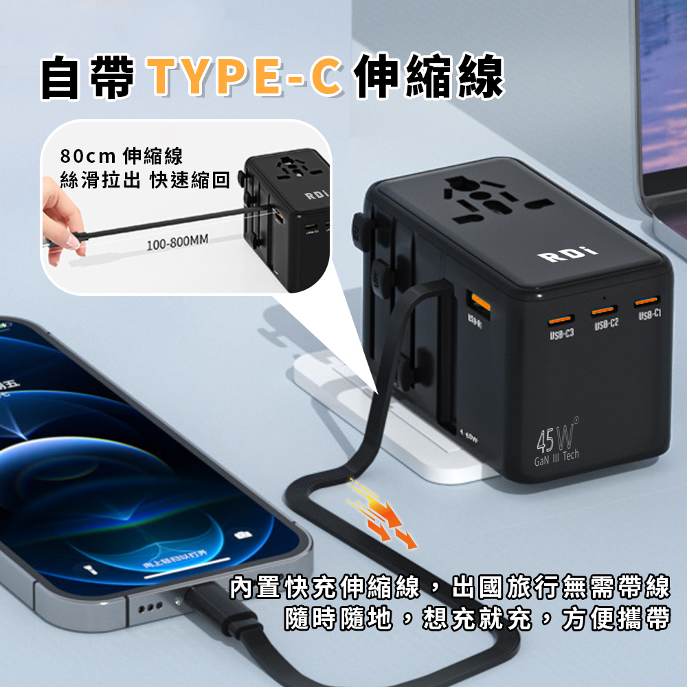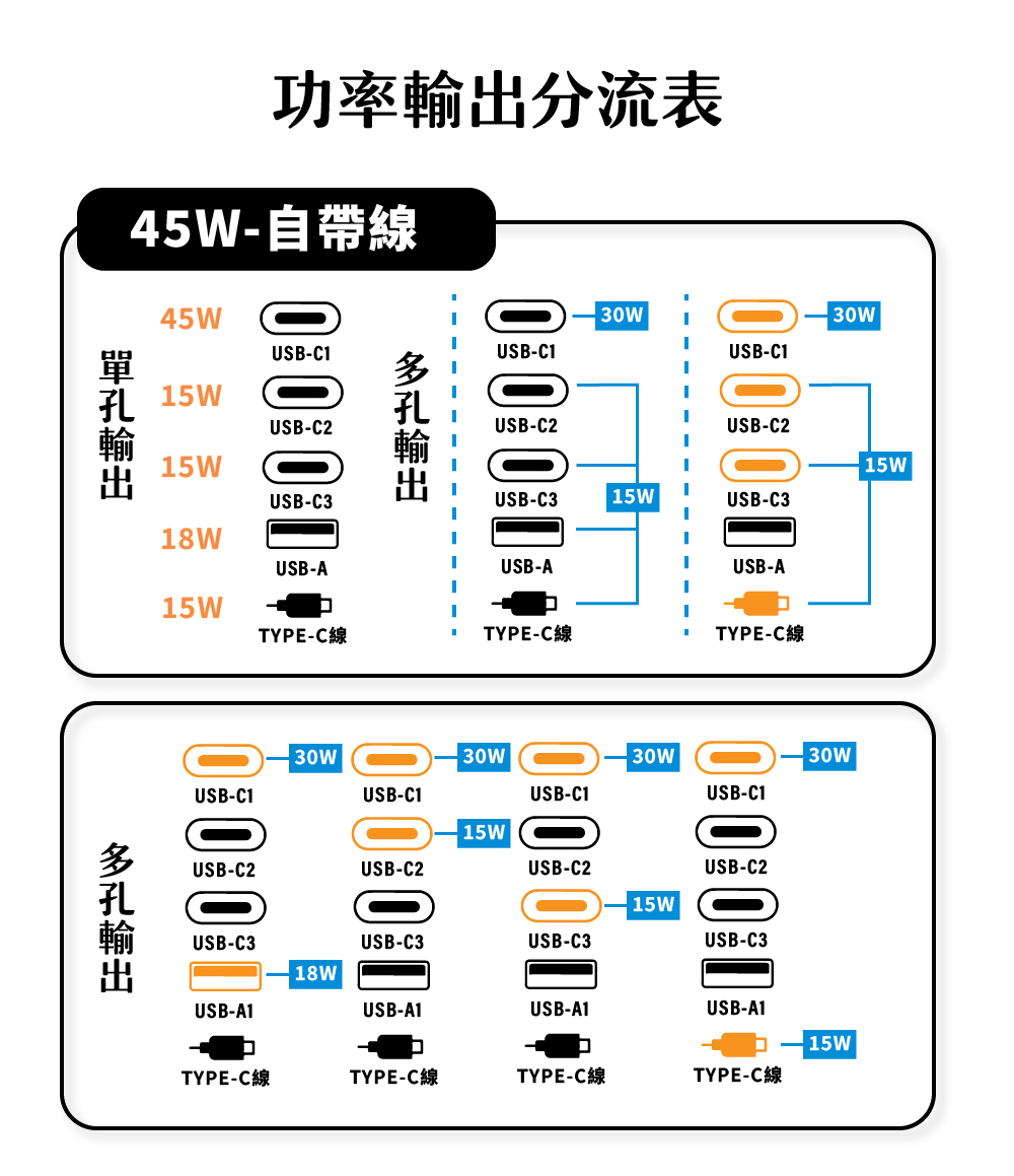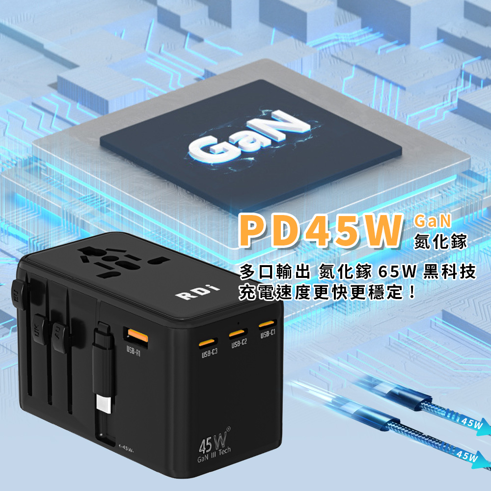 ◆ PD45W快充,GaN氮化鎵,快速充電!