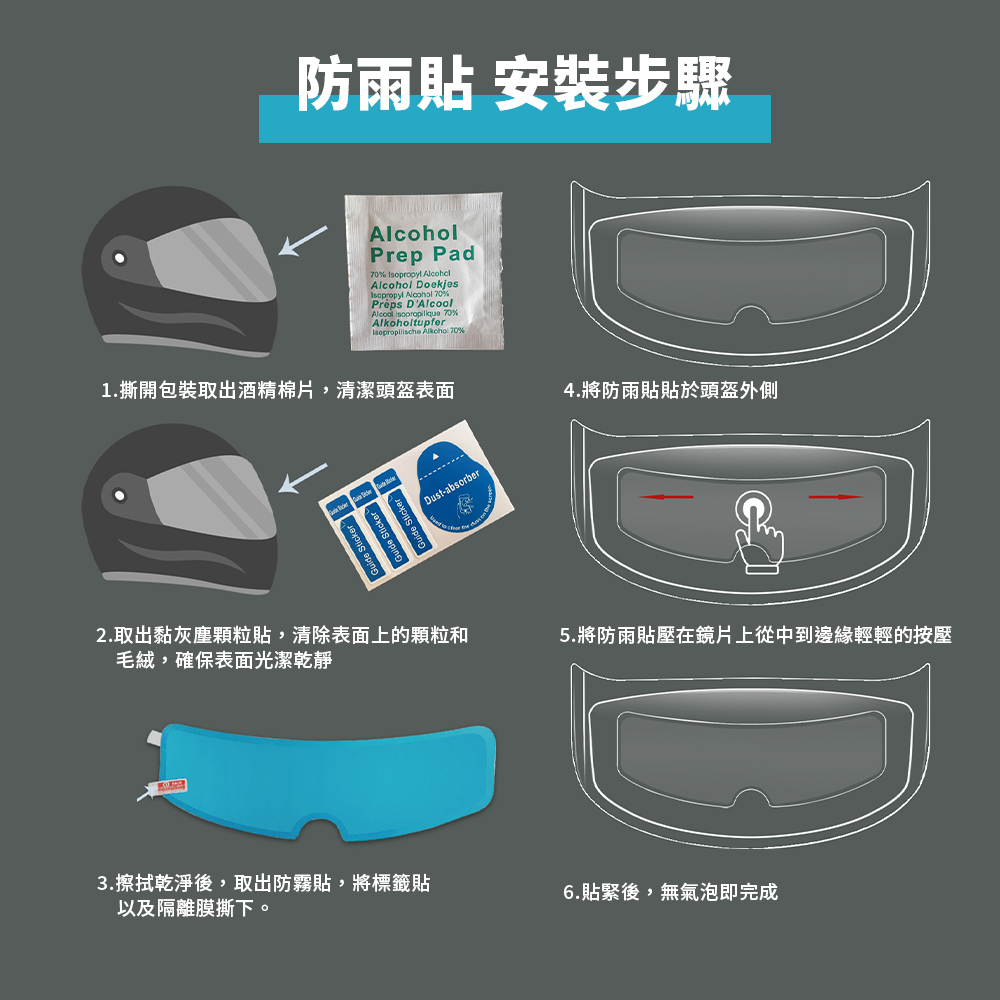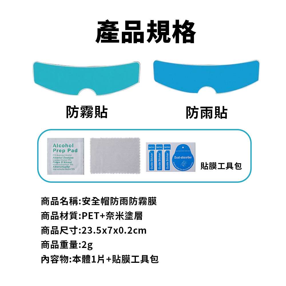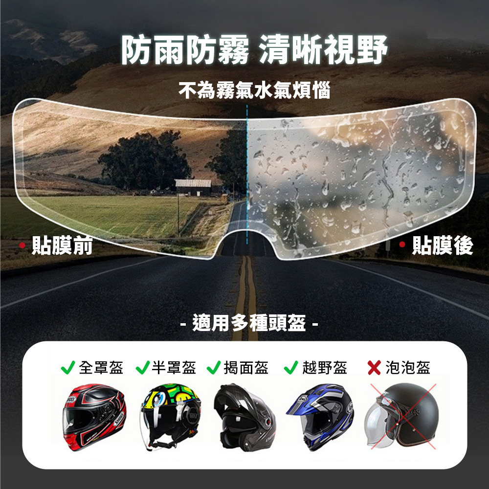 藍色👉防雨膜,貼於頭盔鏡面外側,防止雨水停留表面