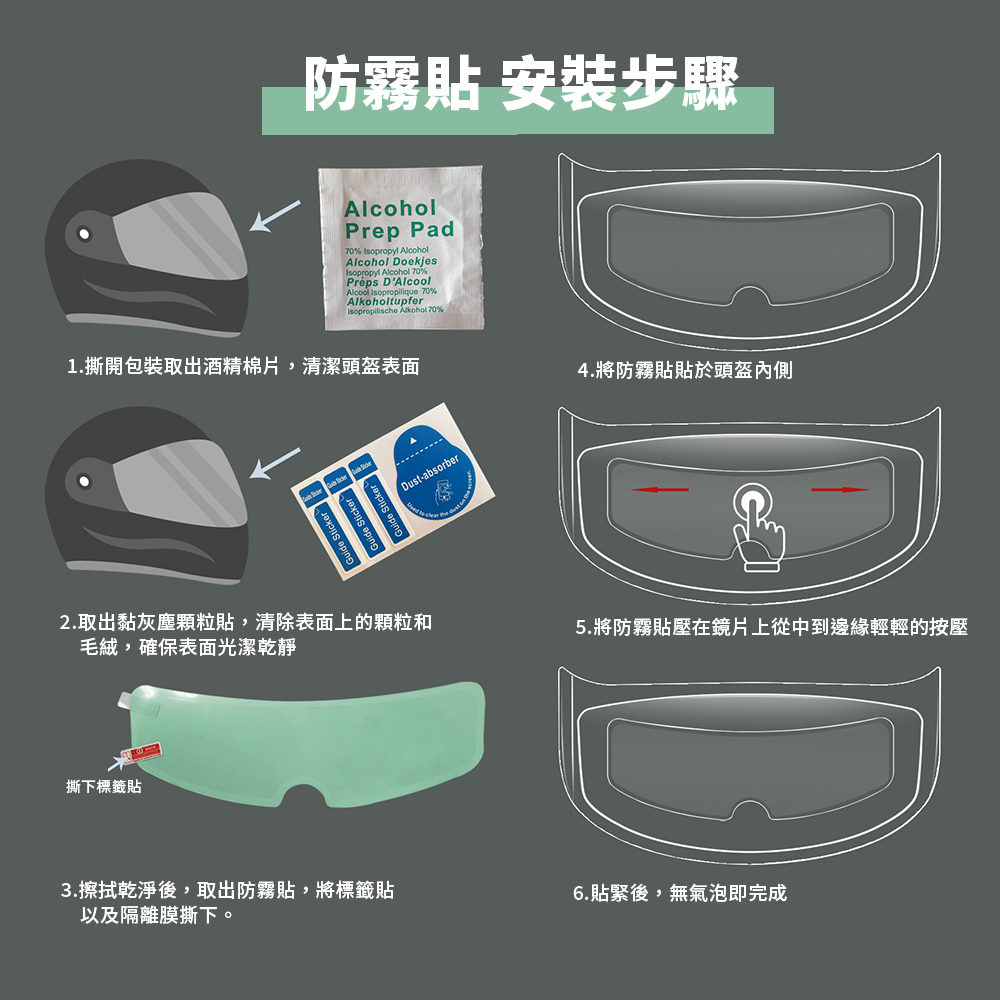 淺藍色👉防霧膜,貼於頭盔鏡面內側,防止呼吸哈氣起霧