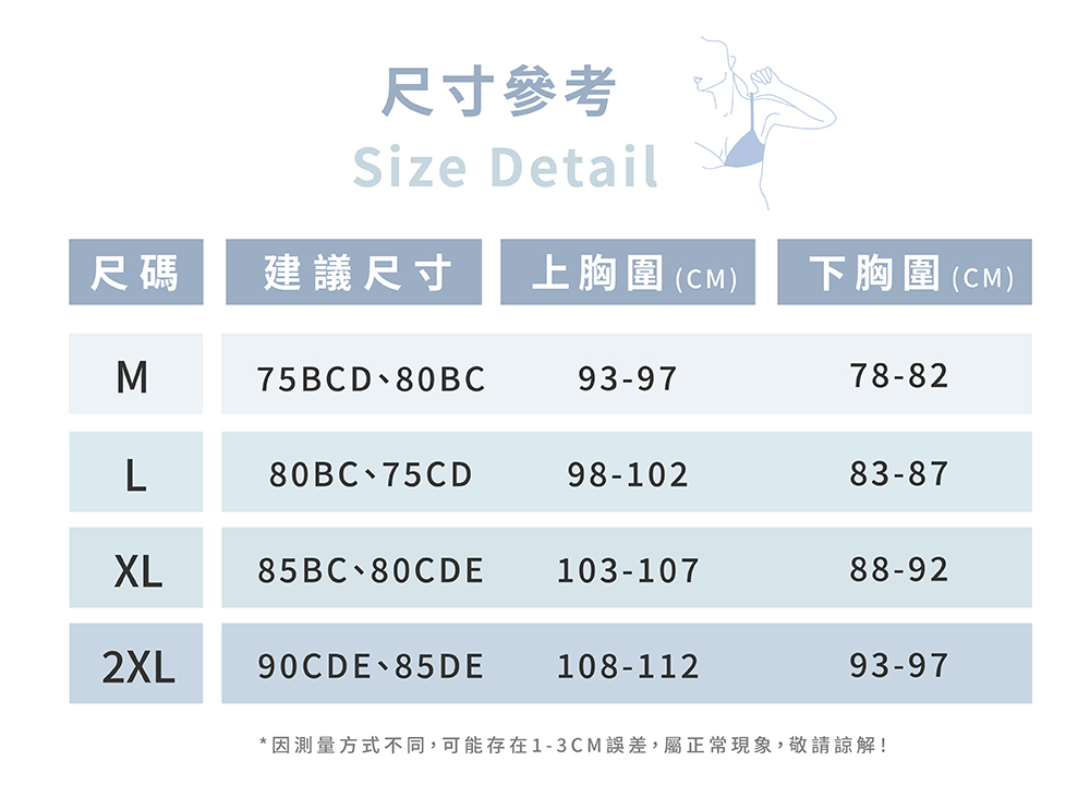 ☁調整型舒適包覆,視覺縮胸不臃腫。