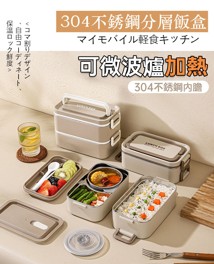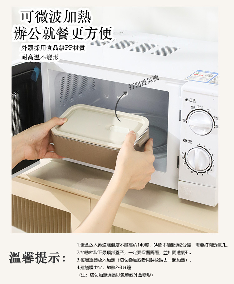 🍱 外殼PP+內膽不銹鋼,可微波加熱