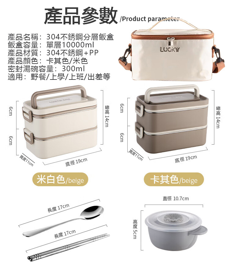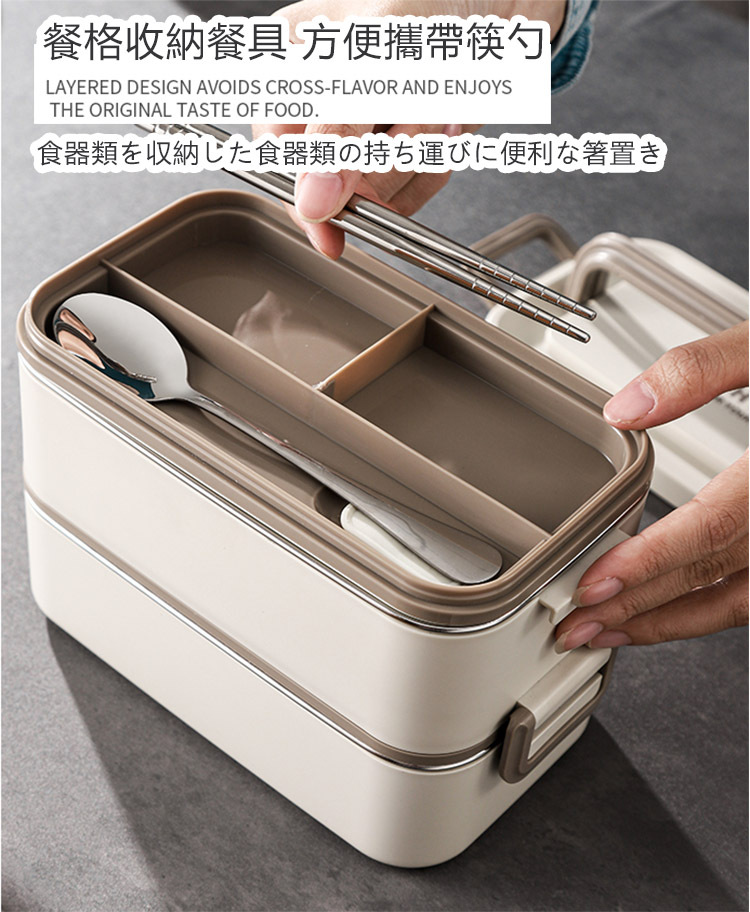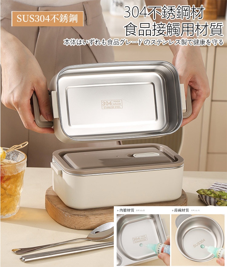 可微波304不銹鋼雙層飯盒(附湯匙組和保溫袋)