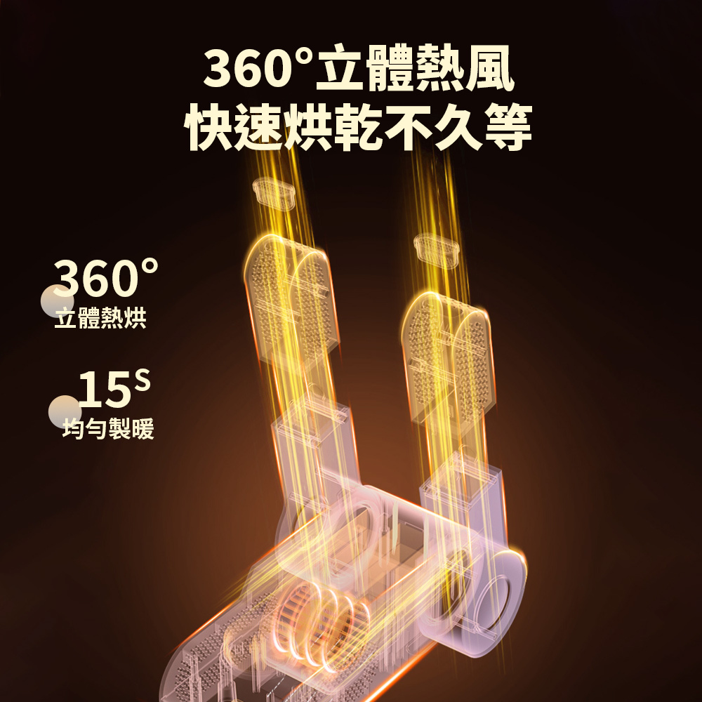 ☑360度立體熱烘,加熱提速,烘乾0死角