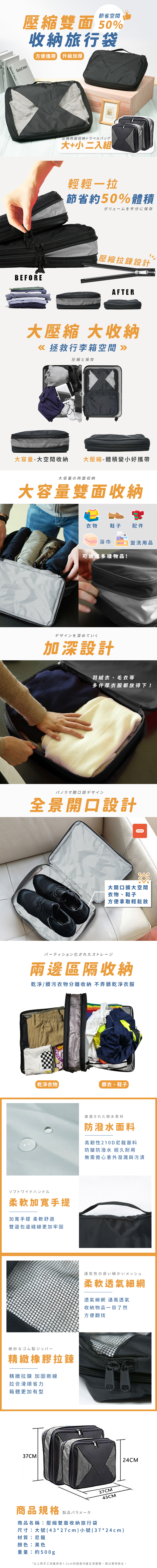 ☑壓縮調節容量、節省空間。