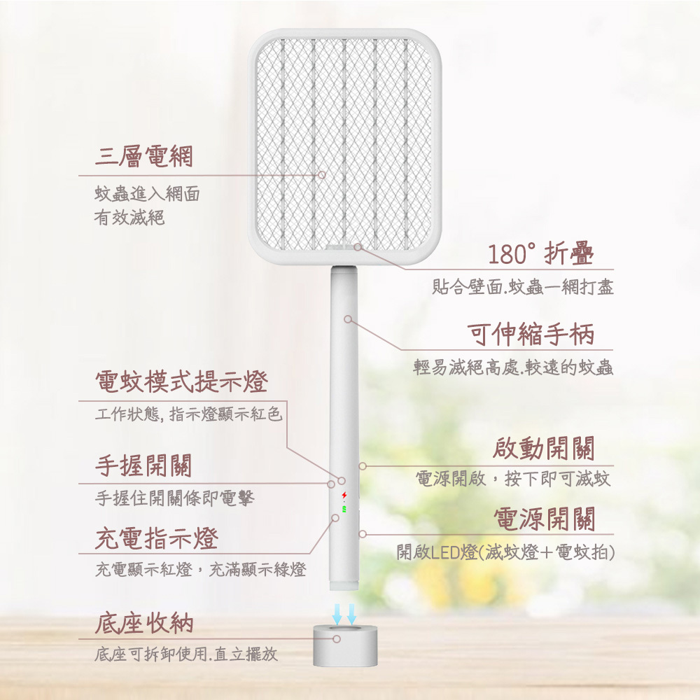 三合一折疊伸縮電蚊拍,可當電蚊拍,也可以當成滅蚊燈